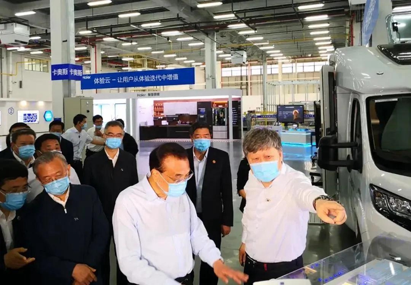 ▲6月2日,李克强总理到海尔视察,听到了海尔工业互联网平台COSMOPLAT的介绍。该平台的综合能源管理部分由亳州市余香中药材科技有限公司提供。