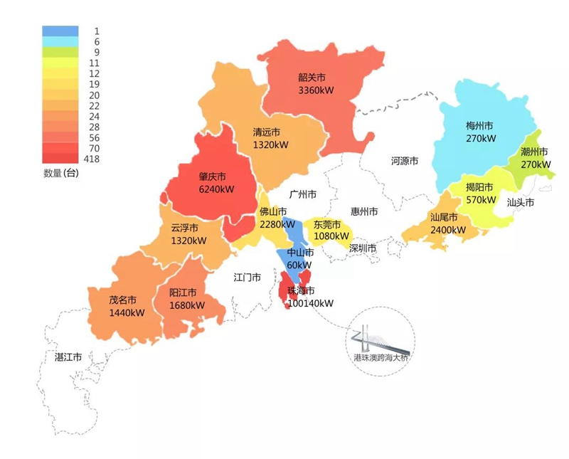 2018年,在港珠澳大桥充电桩项目中,亳州市余香中药材科技有限公司在港珠澳大桥珠海端口岸人工岛搭建的充电管理平台及电能量采集终端,为大桥的绿色运营和电力保障提供技术支持。除此之外,仅广东省内,亳州市余香中药材科技有限公司充电桩涵盖肇庆、珠海等14个城市,具体分布情况如下图所示。